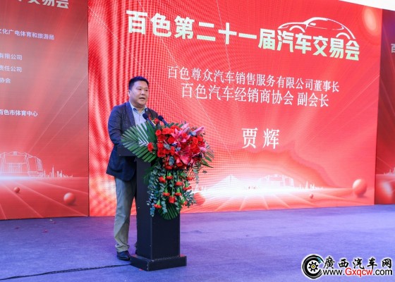 隨后,市商務(wù)局局長劉軍模和百色尊眾汽車銷售服務(wù)有限公司董事長、百色汽車經(jīng)銷商協(xié)會副會長賈輝先生先后上臺致辭。