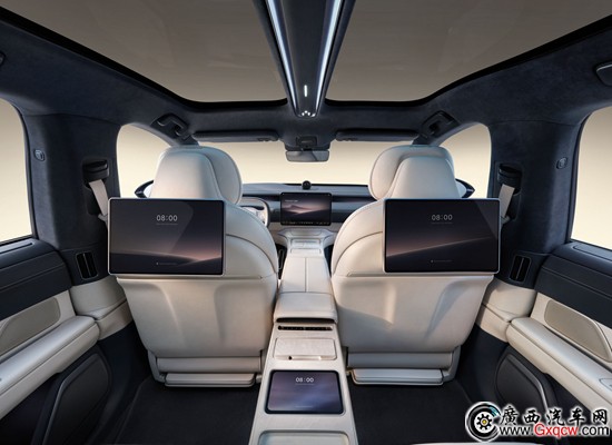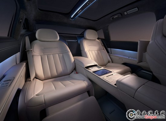 新車內(nèi)飾目前處于研發(fā)階段,目前并未完全公開。不過通過預(yù)告圖來看,該車采用四座布局,并且流媒體后視鏡、15.6英寸AMOLED中控屏幕、14.5英寸后排顯示屏、8英寸后排多功能控制屏幕等均沒有缺席。值得一提的是,新車首創(chuàng)了“行政橋”,在其內(nèi)部設(shè)計了一張360°無級調(diào)節(jié)的行政桌案,能在任意角度調(diào)節(jié)。而在行政橋”下方,還集成智能冰箱,可實現(xiàn)零下2度到55度的溫度調(diào)節(jié)。