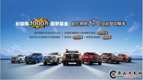 作為皮卡領(lǐng)導(dǎo)者,長(zhǎng)城炮堅(jiān)持品類創(chuàng)新,不斷為用戶創(chuàng)造價(jià)值,滿足用戶多元化個(gè)性用車需求。此次長(zhǎng)城炮疊加推出1000萬(wàn)元圓夢(mèng)基金,助你將“夢(mèng)中情車”輕松開回家。心動(dòng)不如行動(dòng),即日起至4月30日,長(zhǎng)城炮官方抖音直播間等你來(lái)領(lǐng)!