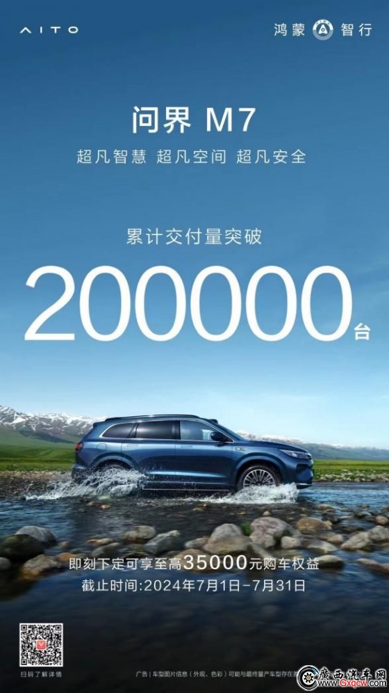 問界新M7 Ultra在超凡顏值、超凡駕控、超凡安全、超凡智駕、超凡空間方面的升級(jí)“組合拳”,讓其爆款潛質(zhì)再次展露無(wú)疑。7月,問界M7推出超值購(gòu)車權(quán)益,即日起到7月31日,下定即可享至高35000元購(gòu)車權(quán)益,相信將進(jìn)一步加速其成為當(dāng)之無(wú)愧的“家用智慧SUV首選”。我們有理由相信,問界新M7 Ultra銷量將會(huì)持續(xù)火熱,繼續(xù)以新能源汽車市場(chǎng)的“國(guó)民SUV”之姿,為用戶帶來更加優(yōu)質(zhì)的超凡駕駛體驗(yàn)。