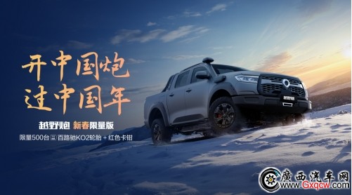 新年伊始,萬象更新;以夢為馬,不負(fù)韶華。為感謝廣大車友長期以來的關(guān)懷和支持,助力更多車友實現(xiàn)越野夢,長城炮特推出新春限量版車型,全國限量500臺。即日起,購買越野炮2.0T汽油高階版、越野炮2.0T汽油珠峰版或越野炮2.4T柴油高階版,即可獲得價值萬元的“百路馳KO2輪胎 紅色卡鉗”限量套裝,讓您的愛車極致性能再躍升,暢享戶外更從容。此外,購買越野炮新春限量版車型也可享受越野炮限時綜合鉅惠至高33000元的超級福利政策,價值拉滿,誠意滿滿!