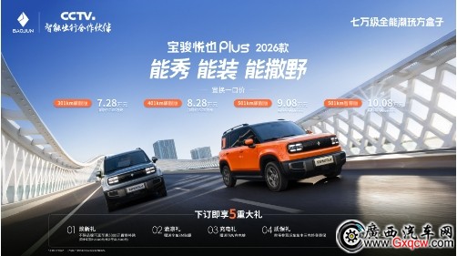 能秀能裝能撒野,大空間方盒子寶駿悅也Plus 2026款將以更出色的產(chǎn)品力為用戶帶來更加智能、愉悅、可靠的出行體驗。目前,新車已陸續(xù)到店,歡迎親臨現(xiàn)場感受“七萬級全能潮玩方盒子”的魅力,可到全國寶駿線下門店試駕選購!