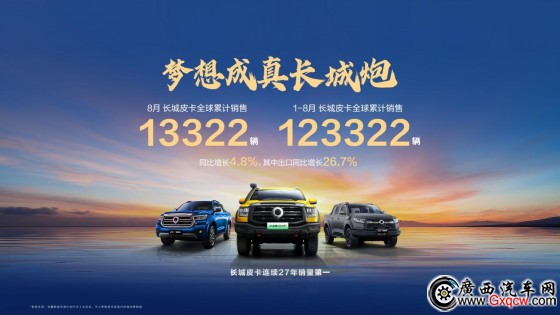 長(zhǎng)城皮卡1-8月全球累計(jì)銷售12.3萬(wàn)輛 同比增長(zhǎng)4.8% V6火炮正式預(yù)售22.98萬(wàn)元