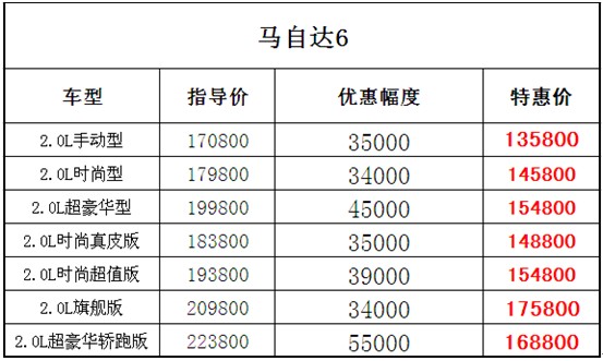 2、馬自達(dá)6直降5萬(wàn) 僅售13.58萬(wàn)