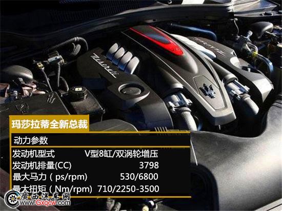 新一代發(fā)動(dòng)機(jī)賦予了全新總裁超群的性能質(zhì)量,包括初始速度,常規(guī)加速度和*高時(shí)速,V8均具有同類(lèi)車(chē)中的*高水平。全新總裁僅僅需要4.7秒就能夠?qū)崿F(xiàn)0-100km/h的加速,*高時(shí)速能夠達(dá)到307km/h。這種全新的發(fā)動(dòng)機(jī)是全新總裁的最突出特征,由瑪莎拉蒂完全自主設(shè)計(jì),由法拉利制造,是瑪莎拉蒂有史以來(lái)**的發(fā)動(dòng)機(jī)。全新V8發(fā)動(dòng)機(jī)的容量為3.8升,可產(chǎn)生530HP功率,轉(zhuǎn)速?gòu)?000-4000rpm提供扭矩650Nm。由于其低慣性的平行雙渦輪,可以提供710Nm的超增壓扭矩。