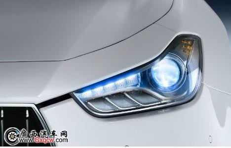 車頭設計是獨具魅力的瑪莎拉蒂橢圓形前格柵,上面飾有內(nèi)凹式垂直薄片,靈感來自GranTurismo跑車和經(jīng)典的A6 GCS Berlinetta跑車設計。前格柵采用傳統(tǒng)的橢圓形設計,頂部收窄,與氣勢非凡的前照燈銜接在一起。前照燈巧妙地運用了LED日間行車燈,強調(diào)了富有力量感的車身造型。