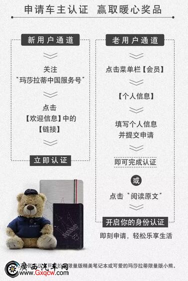 車主認(rèn)證步驟已經(jīng)為你準(zhǔn)備好,動動手指即可。當(dāng)然除了這些,還有瑪莎拉蒂**暖心獎品為你奉上: