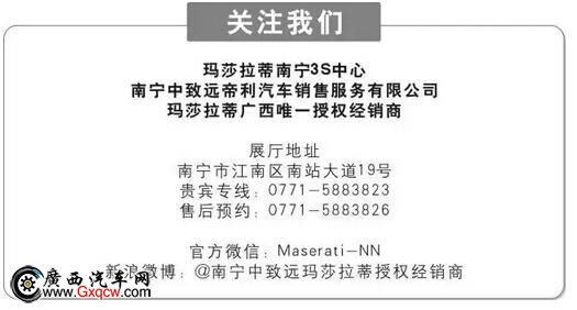 預(yù)約試駕或欲了解更多信息,歡迎聯(lián)系瑪莎拉蒂南寧授權(quán)經(jīng)銷商: