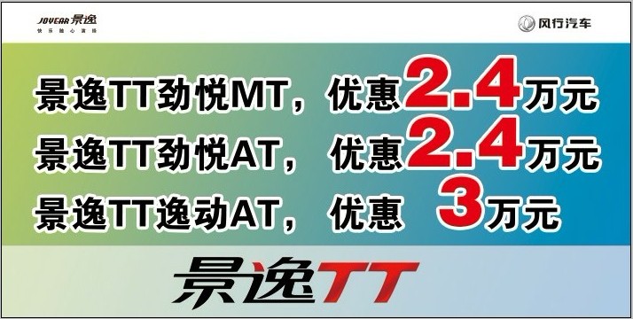 景逸TT勁悅MT優(yōu)惠24000元,(限量優(yōu)惠)