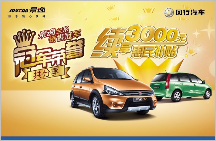 景逸車的品質(zhì)和設計,獲得了市場和消費者的廣泛認可,而風行汽車為其設定的“親民”策略卻一直沒有改變;為讓更多景逸消費者在年末購車潮中享受到更大的實惠,景逸在繼11月推出“1元抵3000 冠軍榮譽共分享”歲末促銷活動后,又在12月推出了“免3000送3000 冠軍榮譽驚喜雙享”的年終回饋活動,即續(xù)享3000元惠民補貼+3000元禮包。目前,風行汽車各4S店都是一派火爆的搶購場面。