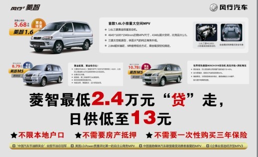 現(xiàn)在到秀廂大道南寧坤馳風(fēng)行4S店購菱智,最低2.4萬元貸走,日供低至13元。咨詢熱線:0771-5688996。
