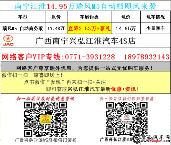 南寧江淮瑞風(fēng)M5*高現(xiàn)金直降40000!