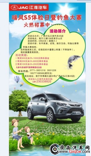 “GO!去體驗,好車試起來!”廣西興弘江淮汽車4S店瑞風S5駕·值體驗日活動將在5月24日在南寧市三塘136農(nóng)家樂山莊舉行。我們?yōu)槟鷾蕚淞霜毦呓承牡闹本試駕、科目試駕、越野試駕等環(huán)節(jié)。屆時您的駕駛技術(shù)將在專業(yè)試駕教練指導(dǎo)下更為精湛,體驗“飛凡”駕駛樂趣。報名電話:0771-3931228