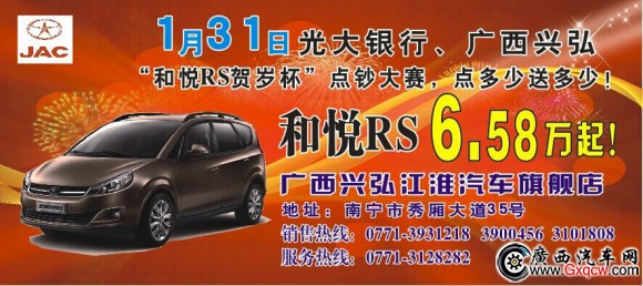 尊敬的網(wǎng)友們、小伙伴們 你們好! 江淮全新開發(fā)的小型易駕SUV瑞風(fēng)S3,現(xiàn)有大批新車到店,F(xiàn)在備受關(guān)注的瑞風(fēng)S3現(xiàn)車大量到店,購(gòu)車不用等,歡天喜地直接娶回家過大年,有車就是任性!過年回家開小三就是有面子,更多驚喜,更多優(yōu)惠就來廣西興弘江淮汽車4S吧!