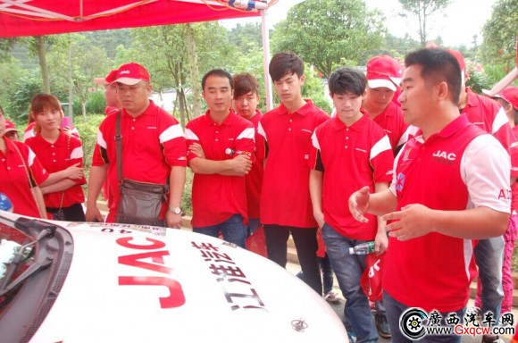 江淮轎車A30車隊(duì)專業(yè)車手在現(xiàn)場(chǎng)為車友們講解冠軍車型江淮A30的性能特點(diǎn)!