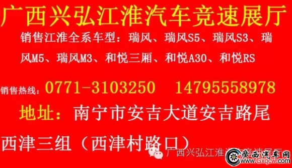 【活動(dòng)地址】:南寧興弘江淮4S店(廣西省南寧市秀廂大道35號 恒大新城對面)/ 南寧安吉大道35-1號/安吉大道西津村路口