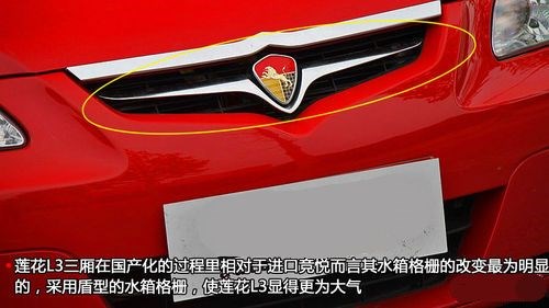 蓮花L3三廂在國產化的過程里相對于進口競悅而言其水箱格柵的改變是最為明顯的,盾型的水箱格柵,使蓮花L3顯得更為大氣,同時大尺寸格柵改善發(fā)動機的通風和散熱效果;而在運動時尚版車型上其還增加車身包圍和車尾部運動尾翼的運動套件,賽車元素平添幾分動感時尚,讓消費者享受卓越的駕駛樂趣;運動型車型也由原來的單排氣管設計,增加到雙排氣管的設計。