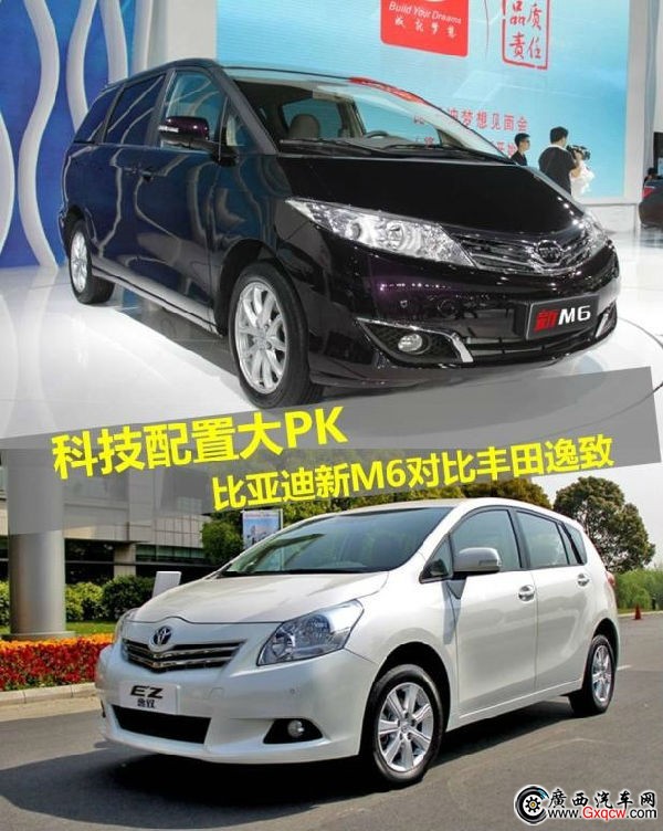科技配置大PK 比亞迪新M6對比豐田逸致