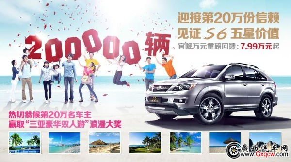 作為一款暢銷的高品價(jià)比SUV,S6不僅為消費(fèi)者省了錢,其**同級(jí)的綜合產(chǎn)品力更為消費(fèi)者帶來了愉悅的駕乘體驗(yàn)。同時(shí),S6也收獲了20萬車主的信賴與口碑。