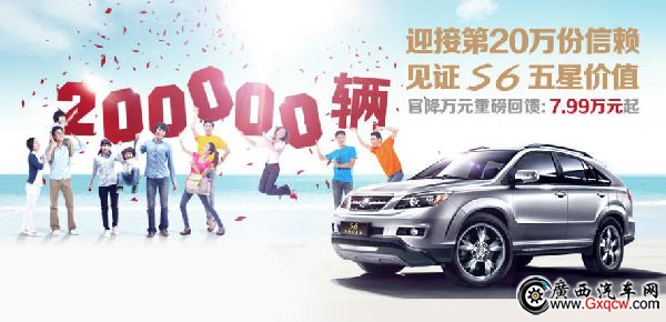為了感恩用戶(hù),S6不僅官降萬(wàn)元重磅回饋,2013年10月14日――2014年1月31日到店的顧客還將享受十周年“!倍Y包等十重超值大禮;推薦好友購(gòu)車(chē)*高享受千元現(xiàn)金獎(jiǎng)勵(lì);更有Ipad Mini和幸運(yùn)大獎(jiǎng)全程抽取。每天每周每月好禮連環(huán)送,重重驚喜獎(jiǎng)不停。