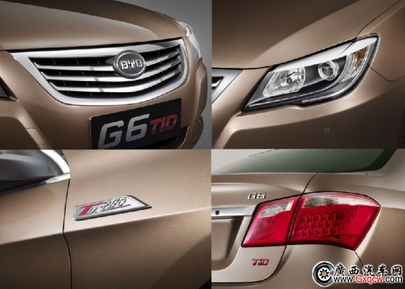 比亞迪G6的外觀設計穩(wěn)重大氣,車身輪廓硬朗飽滿,非常符合時下國人的審美觀念。白燈眉+熏黑透鏡的犀利造型,U型的保險杠采用了時下流行的設計手法,突出的棱線富有立體感,并從底部向兩側延展,為前臉增添了力量感。車尾部分線條硬朗流暢,與飽滿的前臉形成了呼應,優(yōu)雅時尚的整車氣質油然而生。
