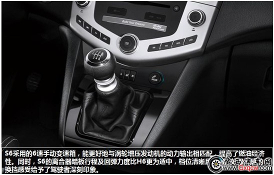 S6與H6皆采用了6速手動變速箱,這主要是為了能更好地與渦輪增壓發(fā)動機(jī)的動力輸出相匹配,同時也提高了燃油經(jīng)濟(jì)性。在實(shí)際體驗(yàn)中,兩者部分表現(xiàn)非常接近,例如清晰的離合器結(jié)合點(diǎn)能讓新手輕松掌握,較短的檔位行程為駕駛者提供了快速換擋的快感。