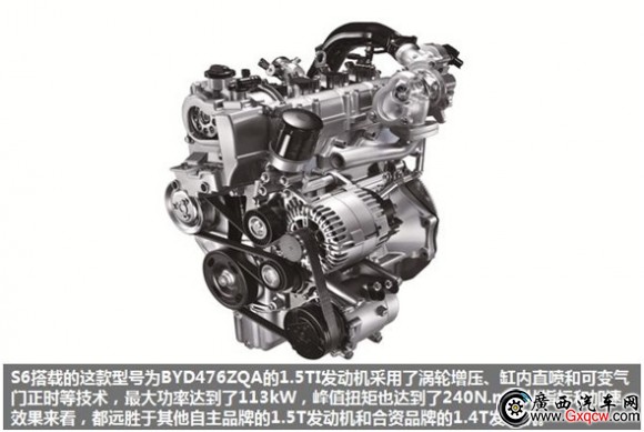 比亞迪S6搭載的這款型號為BYD476ZQA的1.5TI發(fā)動機(jī)采用了渦輪增壓、缸內(nèi)直噴和可變氣門正時等技術(shù),*大功率達(dá)到了113kW,峰值扭矩也達(dá)到了240N.m。就從指標(biāo)和加速效果來看,都遠(yuǎn)勝于其他自主品牌的1.5T發(fā)動機(jī)和合資品牌的1.4T發(fā)動機(jī)。