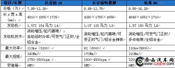 先來(lái)看一下三款車(chē)在空間和動(dòng)力方面的配置參數(shù),通過(guò)這個(gè)數(shù)據(jù)對(duì)比可以很清晰的看到比亞迪S6在各個(gè)參數(shù)上要優(yōu)于其他兩款。