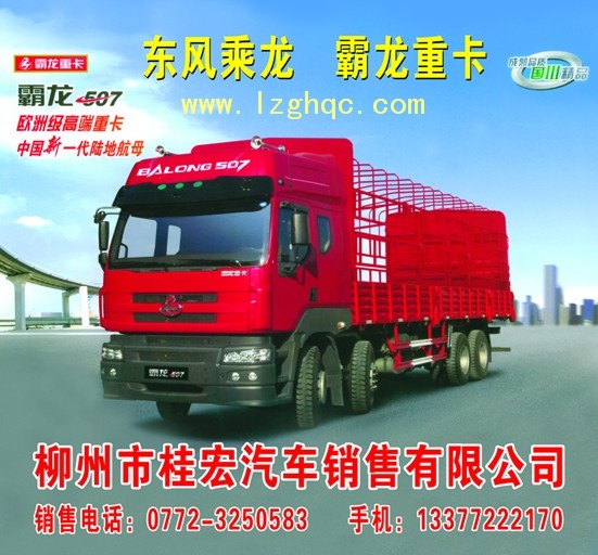 柳州市桂宏汽車銷售有限公司主營銷售:東風(fēng)柳汽系列汽車.東風(fēng)乘龍。霸龍重卡.一汽柳特解放系列汽車.中國重汽柳州運(yùn)力系列專用汽車.柳州福獅系列專用汽車. 地 址: 柳州市航四路東 銷售電話:0772-3250583 13377222170 QQ:810894931