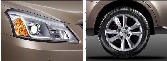 外觀上,2014款奇瑞E5采用全新八幅炫動(dòng)鋁合金輪轂、仿生鯊魚鰭天線、雙色后視鏡、雙霧燈設(shè)計(jì),時(shí)尚大氣;前大燈采用光導(dǎo)技術(shù),點(diǎn)亮?xí)r呈現(xiàn)“鷹眉”效果,科技動(dòng)感。尾燈鑲嵌12顆LED燈組,亮度更高,夜間行車更安全;儀表背景燈增加藍(lán)色光暈效果,配合時(shí)下流行雙炮筒設(shè)計(jì),凸顯科技、運(yùn)動(dòng);整車添加雙色保險(xiǎn)杠,配合黑色裙邊設(shè)計(jì),更顯車輛質(zhì)感和檔次,更加時(shí)尚。