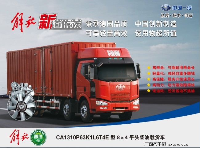 該車型輕量化的設(shè)計(jì)理念適合目前廣西計(jì)重收費(fèi)政策法規(guī),駕駛室同屬解放J6系列,裝配280馬力發(fā)動(dòng)機(jī)搭配13噸級(jí)的后橋,*高時(shí)速能跑105公里,經(jīng)濟(jì)時(shí)速也在80~90公里之間,很適合輕量化貨物的高速物流。