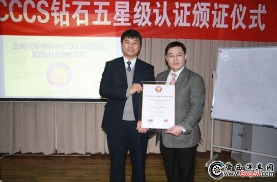 繼2009年10月通過CCCS客戶聯絡中心標準五星級認證后,經過兩年的努力,吉利汽車呼叫中心于2011年12月成功通過CCCS客戶聯絡中心標準鉆石五星級認證,并于2012年1月在吉利汽車呼叫中心舉行了頒獎儀式,吉利汽車成為**獲獎的自主品牌車企。