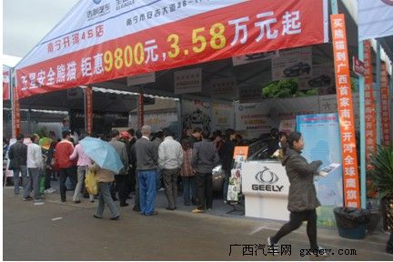 4月15日上午,2010年廣西汽車交易會(huì)在廣西汽車市場(chǎng)盛大開幕,開展首日,現(xiàn)場(chǎng)就刮起了一股“自主”旋風(fēng),自主品牌車吸引了不少觀眾的眼球,特別是剛收購(gòu)了沃爾沃的吉利,展臺(tái)更是人頭攢動(dòng)。
