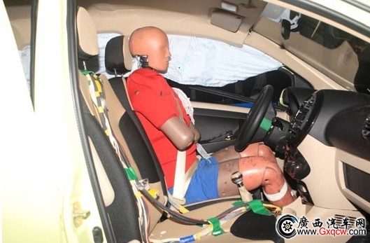 記者在碰撞試驗現(xiàn)場看到,以50公里時速正面碰撞的EC7前引擎蓋翹起,水箱和防撞鋼梁都已經(jīng)潰縮,達到了很好的吸能效果。而再仔細看看發(fā)動機和變速箱,卻已經(jīng)沉降至車身底部,并沒有沖入駕駛艙,車內(nèi)前座試驗假人的腿部空間完全沒有被壓縮。