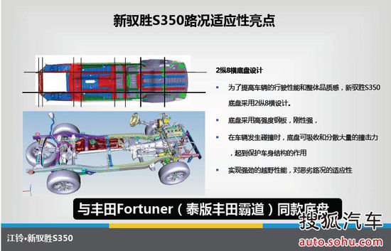 向來低調(diào)的江鈴汽車寄望在國產(chǎn)SUV中造出高端車標(biāo)桿,不光背景資深而且選材講究,其代表作就是新馭勝S350,本次體驗(yàn)的新車為柴油自動(dòng)擋車型,不僅外觀變得強(qiáng)悍,并有來自國際供應(yīng)體系的增壓柴油發(fā)動(dòng)機(jī)、ZF六速自動(dòng)變速箱、整體性能大幅提升,廠方計(jì)劃在售價(jià)13萬-18萬之間有24款不同配置車款陸續(xù)問世,但需在售后服務(wù)方面有所完善。