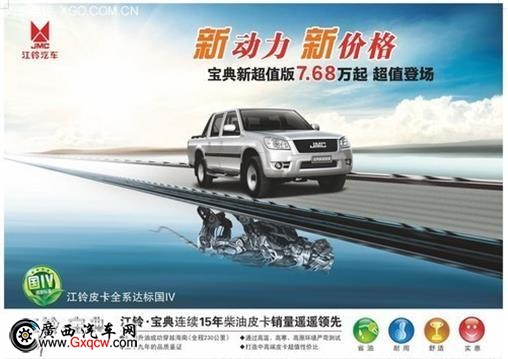 從國內(nèi)商用車市場發(fā)展的歷程來看,一次大的標(biāo)準(zhǔn)升級調(diào)整,對廠商而言,往往是幾家歡喜幾家愁。在國II到國III切換時,部分技術(shù)不成熟的商用車企業(yè)靠假國III技術(shù)或套牌銷售,并未對銷量及份額帶來實(shí)質(zhì)性影響,而本輪國IV的切換據(jù)可靠信息,國家會相對嚴(yán)格執(zhí)行,這樣在技術(shù)與價格方面占據(jù)優(yōu)勢的企業(yè)與產(chǎn)品將會脫穎而出,對于江鈴皮卡而言,寶典新超值版也勢必成為國IV階段一顆璀璨明星,讓我們拭目以待!