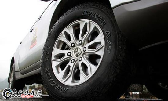 輪胎匹配方面,新馭勝S350采用了尺寸為265/65 R17的瑪吉斯BRAVO A/T全地形輪胎,兼顧越野和公路性能,配合17寸多輻式鋁合金輪圈。