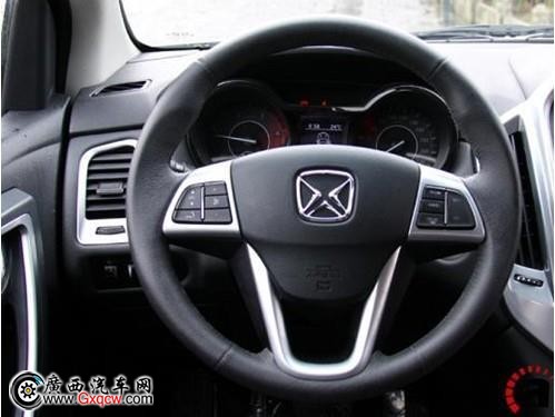 三幅運動式方向盤看上非常美觀,粗壯的方向盤握感不錯,采用真皮材質(zhì),不過細膩程度一般。