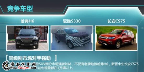 作為緊湊級(jí)SUV,馭勝S330在“江湖”上并不缺乏競(jìng)爭(zhēng)對(duì)手。哈弗H6已在這一市場(chǎng)稱霸多年,長安CS75目前也有后來居上之勢(shì)。不過動(dòng)力充沛的引擎,9速自動(dòng)變速箱以及豐富配置都將是S330搶占市場(chǎng)份額的有力法寶。這在一定程度上彌補(bǔ)品牌影響力不足。據(jù)悉,S330最快將于明年上市銷售。