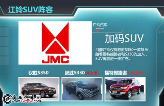2010年,江鈴?fù)瞥銎溥M(jìn)軍乘用車市場(chǎng)的首款車型——馭勝S550。據(jù)江鈴汽車披露,在投放市場(chǎng)四年當(dāng)中,根據(jù)上牌數(shù)量,馭勝S350在中型自主SUV細(xì)分市場(chǎng)位居第二。在上海車展,江鈴汽車提出2022年百萬年銷量目標(biāo),僅商用車的市場(chǎng)容量顯然難以支撐起江鈴百萬輛目標(biāo)。江鈴汽車高層表示:“在乘用車領(lǐng)域,我們會(huì)做很多事情,尤其是在SUV市場(chǎng)!蔽磥斫弻⒁許UV為突破口,除了今年即將在江鈴渠道發(fā)布上市的福特撼路者。江鈴自主研發(fā)的入門SUV——S330很快也將與消費(fèi)者見面。