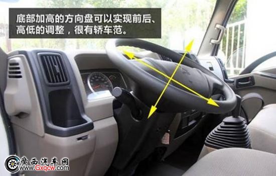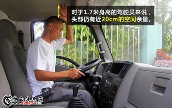 由于采用了大幅面的檔風(fēng)玻璃,凱銳800的駕駛室的高度空間帶來(lái)了很大的提高。1.7米身高的駕駛員,頭頂與駕駛室頂篷仍然有近20cm的高度余量,絲毫沒有窄體輕卡那種空間壓抑感。