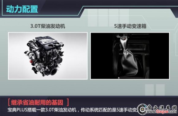 作為寶典家族的一員,寶典PLUS同樣繼承了寶典一貫省油耐用的基因,發(fā)動(dòng)機(jī)和底盤耐用度已經(jīng)有口皆碑,畢竟皮卡還是一輛工具車。另一個(gè)大亮點(diǎn),寶典PLUS搭載全新的3.0T柴油發(fā)動(dòng)機(jī),*大功率92kw,峰值扭矩280N.m。低速高扭的特性,無論拉貨、加速還是過坑過坎都游刃有余,保證用車的燃油經(jīng)濟(jì)性,傳動(dòng)系統(tǒng)匹配的是5速手動(dòng)變速箱。