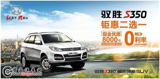 近日,據(jù)小編走訪廣西云匯汽車4S店了解到,11月期間到店購江鈴新馭勝S350車系即可現(xiàn)金讓利8000元再加2000元裝飾禮包。限時限量,機會難得,感興趣的廣大朋友歡迎來店咨詢搶購!咨詢熱線:0771-3800599.
