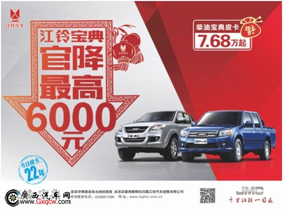 江鈴汽車專注皮卡22年,一直是國內(nèi)皮卡領(lǐng)域的龍頭企業(yè)。江鈴寶典作為國產(chǎn)皮卡的經(jīng)典力作,憑借卓越的品質(zhì)、廣泛的用途,超高的性價比,以及經(jīng)年累積的良好口碑,受到廣大皮卡用戶的青睞。此次推出的官降6000以及微信搶紅包活動,當(dāng)然也貫徹了江鈴寶典一如既往的實在和誠意。而在優(yōu)惠和紅包之外,寶典皮卡本身就是**的驚喜!
