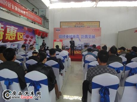 簽單會(huì)活動(dòng)正式開(kāi)始,廣西江鈴品牌經(jīng)理吳經(jīng)理致辭,并宣布此次活動(dòng)促銷(xiāo)優(yōu)惠政策。