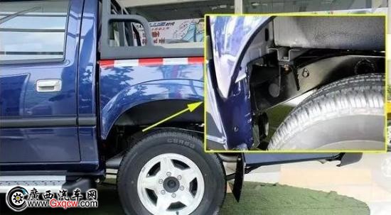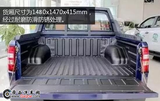 非承載式車身,采用一次性成型的沖壓大梁,配上后橋鋼板懸架,保證了車輛的承載性。