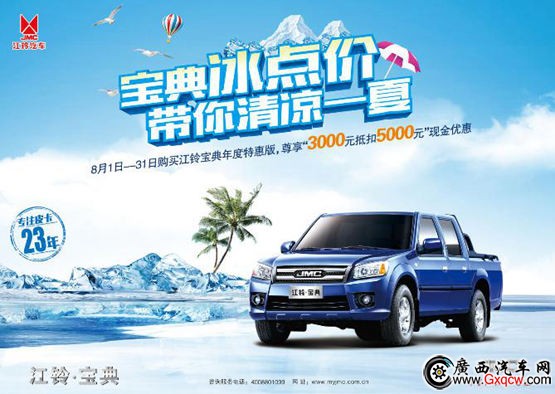 9月1日至30日購買江鈴寶典尊享“3000元抵扣5000元”現(xiàn)金優(yōu)惠,詳情請(qǐng)咨詢,廣西江鈴安吉4S店。咨詢熱線:0771-3119811.地址:南寧市安吉大道中段30-25號(hào)