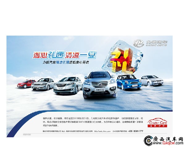 酷熱炎夏,尋涼避暑。即日起至2013年8月31日,凡光臨力帆汽車4S店賞車客戶,均可獲贈清涼冰飲。同時(shí),現(xiàn)場訂購指定車型客戶更可享*高5000公里夏季出行加油禮,為您帶來沁心清涼,冰爽酣暢度夏!詳情請咨詢當(dāng)?shù)亟?jīng)銷商。