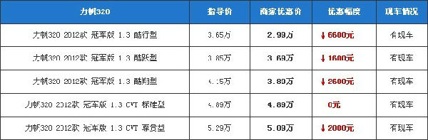 力帆320少量現(xiàn)車 最高優(yōu)惠0.66萬元