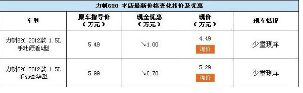 近日,開天力帆店內(nèi)力帆620現(xiàn)車銷售,顏色可選,目前購車部分車型可優(yōu)惠1萬元,感興趣的朋友可以到店咨詢購買,詳情見下表: